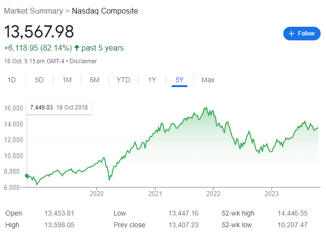 Pasaran Saham Wall Street adalah merupakan pasaran saham yang terbesar di dunia! Malah... jika kita lihat dan bandingkan 5 tahun kebelakangan ini... di antara pasaran Wall Street dan Bursa Malaysia..Kita boleh lihat pasaran Wall Street mencatatkan peningkatan yang agak stabil... Index Nasdaq mencatatkan kenaikan sebanyak +80% dalam tempoh 5 tahun..
